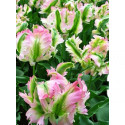 Попугайный тюльпан Green Wave неожиданного зеленого окраса с нежно-розовыми полосами на кончиках гофрированных лепестков, которые напоминают перья экзотических попугаев. Оригинальные цветы станут отличным украшением клумб, садовых композиций, бордюров или террас, если выращивать их в контейнерах.